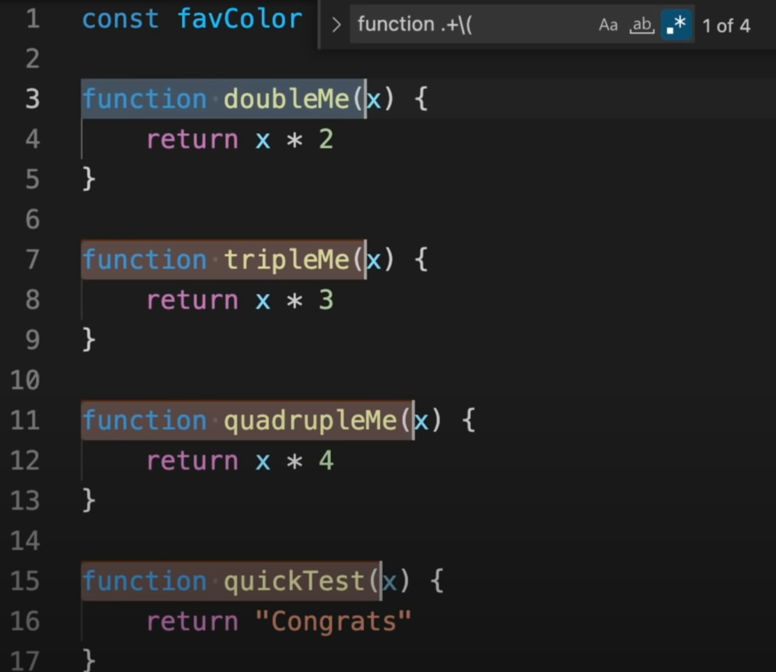 Cmd + F - 정규표현식 사용 켜기