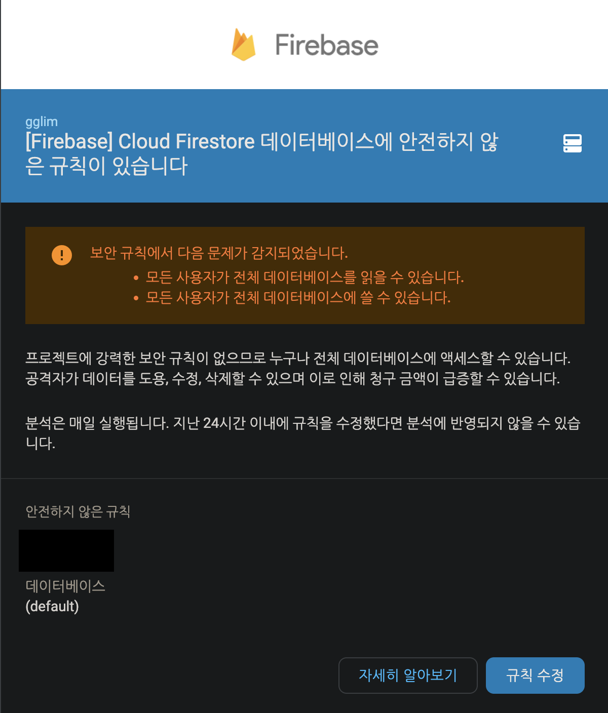 아래와 같은 보안 규칙 경고 메일을 계속 받게 됨.